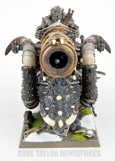 On to one of the current centerpieces of my army, a Slavegiant. This guy has been recently conquered by a Tyrant, and still has a not of scars and bruises to show for it. His Gnoblar handlers are struggling to get his collar (with attached millstone) affixed before he disappears over the hills.